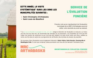 La MRC d’Arthabaska procède actuellement à des visites systématiques dans des municipalités du territoire :